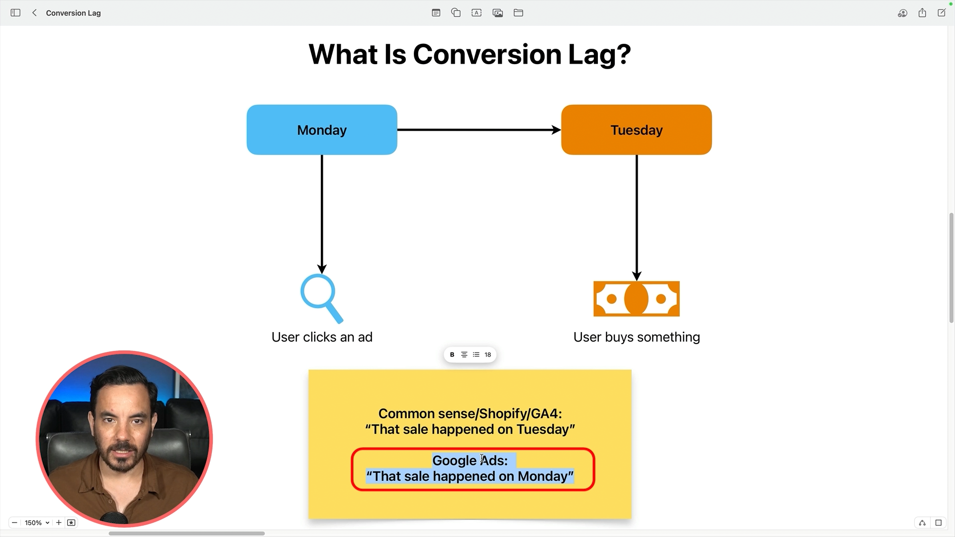 But Google Ads will say: “Nope. That sale happened on Monday.”